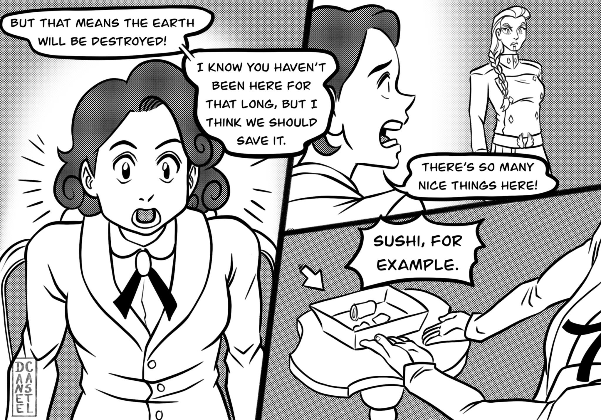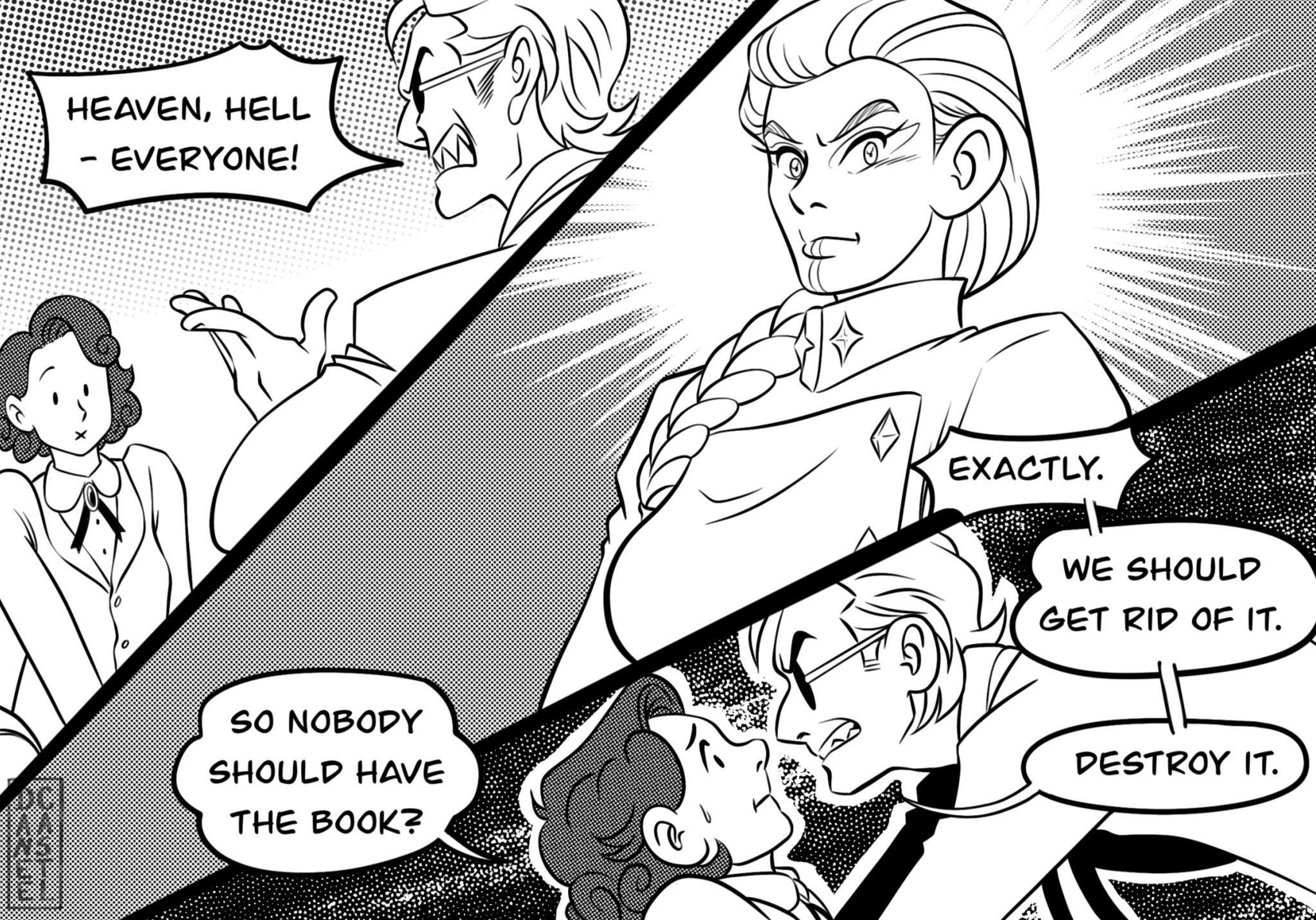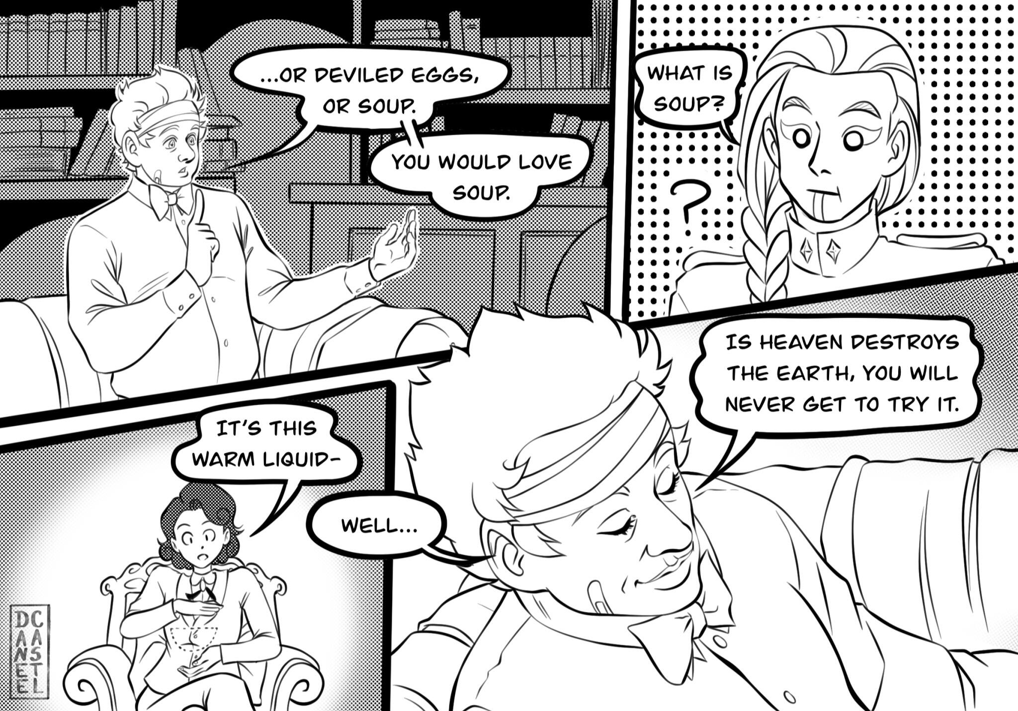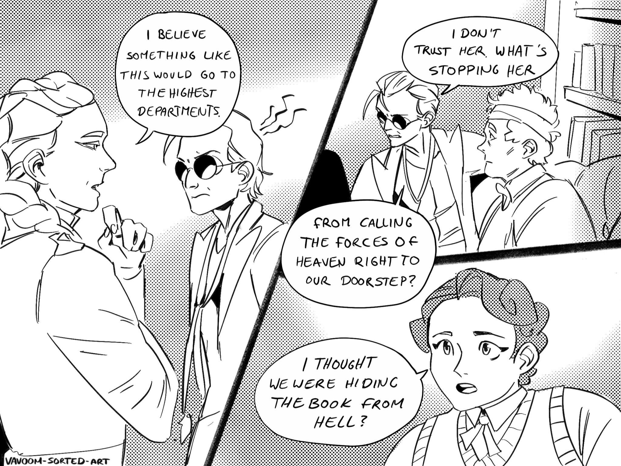 astrobleme [ as-truh-bleem ] - an erosional scar on the earth's surface, produced by the impact of a cosmic body, such as a meteorite.A Good Omens collab comic between Daneecastle and Zoey Time.Posted every Sunday(Zoey Time) and Wednesday(Danee).Posted on: